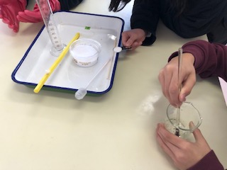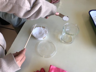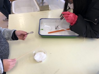 ものの溶け方についての実験です。ミョウバンの温度による溶け方の違いを調べています。