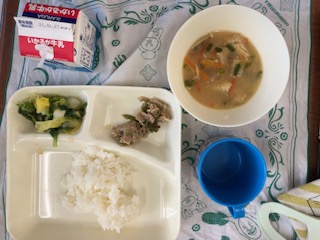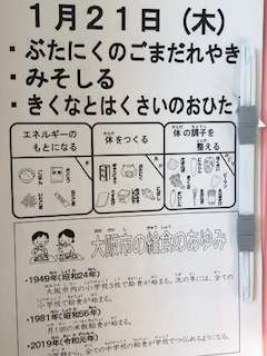教室に掲示してある給食カレンダーには、大阪市の給食の歴史が書かれています。