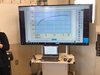 情報について学習しています。このグラフはインターネットの普及率の変化を表しています。