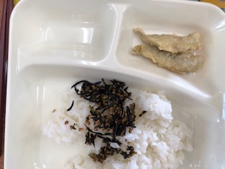 今日の給食には、いわしの天ぷらが出ました。