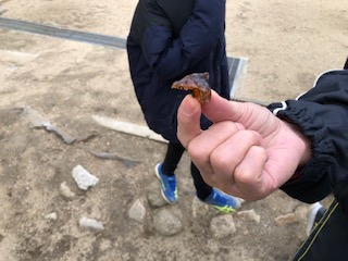 4年生の理科では、四季の変化を学習しています。今日は学習園で冬の生き物を探しました。桜の花芽や樹液も観察しました。