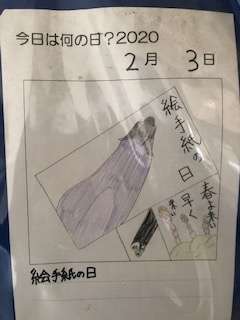 今日は、絵手紙の日です。2月3日を、2・3(ふみ)として決められました。