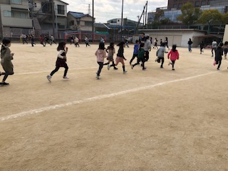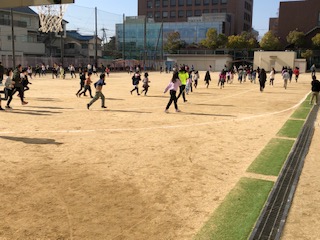 かけ足週間も2週目となっています。今日も2時間目の後の休み時間と昼休みに分散してかけ足を行いました。
