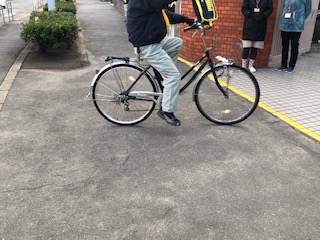 教職員も自転車で巡回したり、玄関で見守ったりしています。