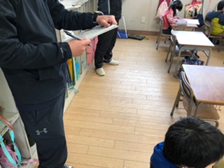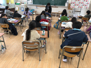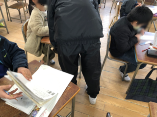 1年生の国語で校内での公開授業を行いました。密な状態を避けるため、参観する教員の人数を制限しています。