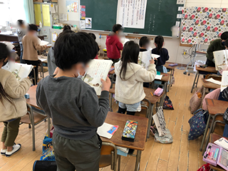 1年生も教科書を持ってしっかりと音読していました。