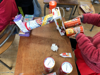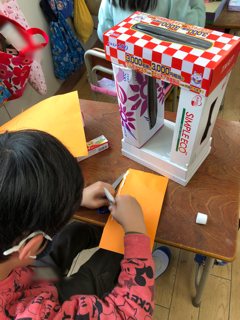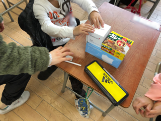 いろいろな空き箱を使って工作をしています。何を作っているのでしょうか?