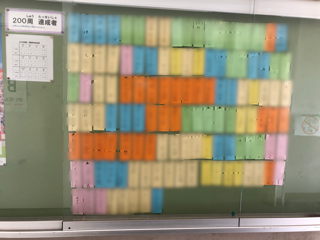 子どもたちは体育や休み時間などに運動場を走っていました。200周を達成した子どもたちもたくさんいました。職員室前に達成した児童名が掲示されています。(ホームページ上では児童名はモザイク処理をしています)