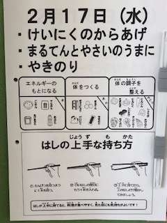 今日の給食カレンダーには,はしの上手な持ち方が書かれています。