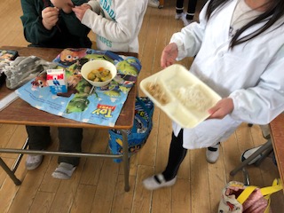 給食の配膳の様子です。(1年生)