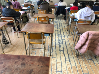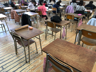 3年生は1クラスですが、算数では2つに分割して少人数での指導を行っています。それぞれの教室にある空席は少人数になったことを意味しています。