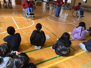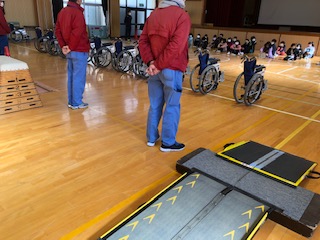 まず、スタッフから車いすの仕組みや乗り方の説明を受けました。