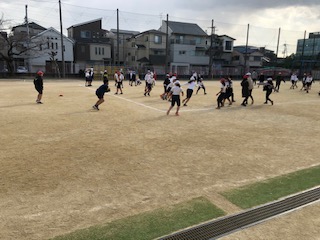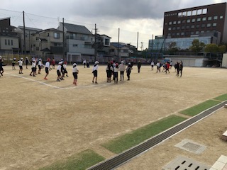 今日は、屋外スポーツクラブと屋内スポーツクラブは運動場で合同で活動しました。