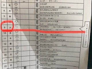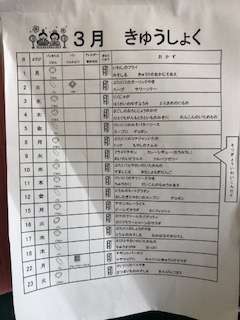 教室には3月の給食カレンダーが掲示されています。