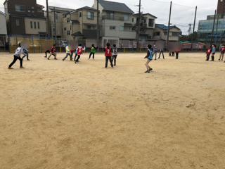 6年生の卒業をお祝いする取り組みが続いています。今日は5年生と6年生がいっしょにドッジボールをして楽しいひと時を過ごしました。