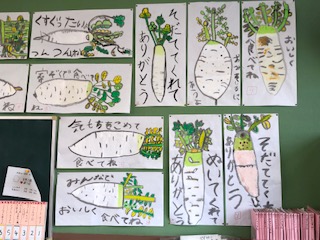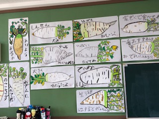 先日、収穫しただいこんの絵を描き、だいこんの思いを言葉にして書いています。