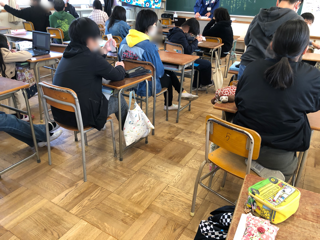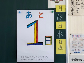 6年生の4時間目の教室の様子です。タブレットを使ったり、まとめや片付けをしたりしています。6年生は、給食とそうじの後、下校します。明日はいよいよ卒業式ですね。