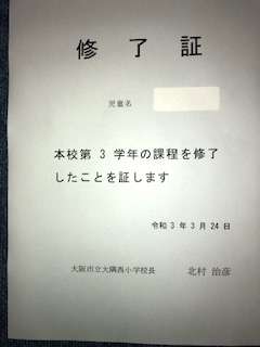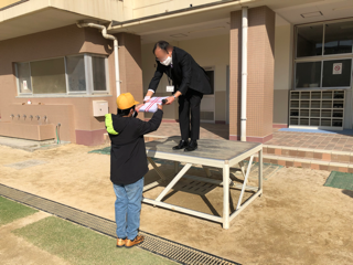 はじめに校長から代表の5年生に修了証とあゆみが手渡されました。