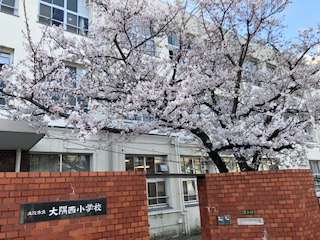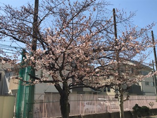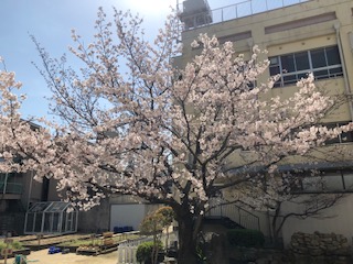 学校にある桜がとてもきれいに咲いています。修了式に桜がこれだけ咲くのはとてもめずらしいことですね。