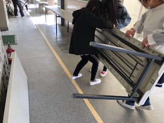 新しい6年生が準備のお手伝いをしています。