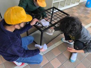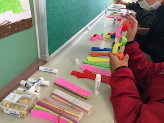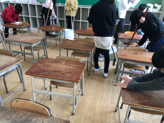 6年生が1年生の教室のそうじや飾りつけなども手伝っています。