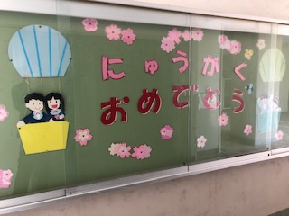 校内に1年生へのメッセージを掲示して、全校で入学をお祝いしています。
