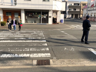 始業式の登校時間に警察官の方が学校の玄関前の横断歩道に立っておられました。ありがとうございます。