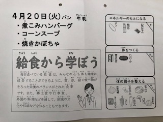 給食カレンダーには、「給食から学ぼう」の記事が載っていました。