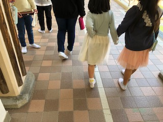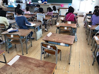 まず、集団登校の班長が1年生を教室に迎えに行きました。続いて地区ごとに集まって集団登校の約束や安全などについて話し合いました。