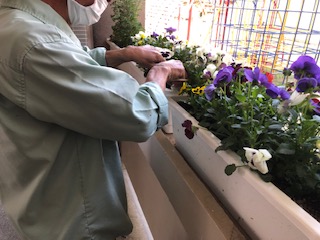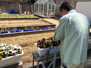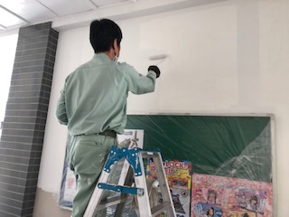 管理作業員が校内のペンキ塗りや花がらつみなどをしています。