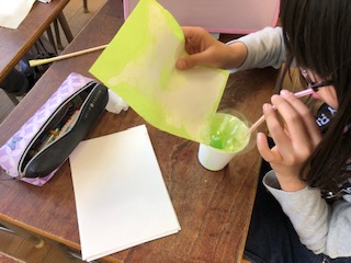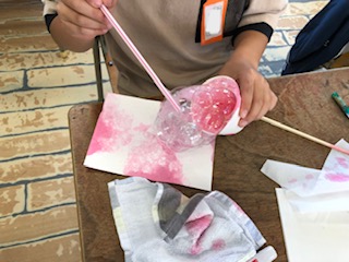 絵の具をとかした水をストローでふいて出た泡を画用紙に置いていきました。