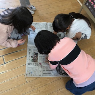 昨日、読売新聞の記者が2年生のクラスで緊急事態宣言下の学校の様子を取材されました。担任が掲載されている新聞を紹介しています。子どもたちは夢中で新聞を読んでいます。