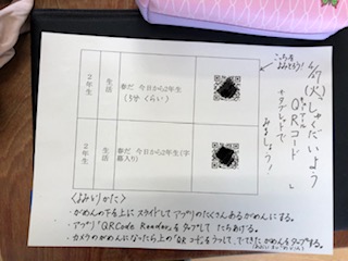 ◯(上の写真)QRコードを読みこんで学習動画を見るためのプリントです。