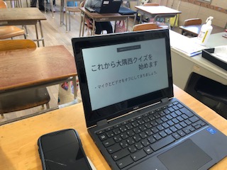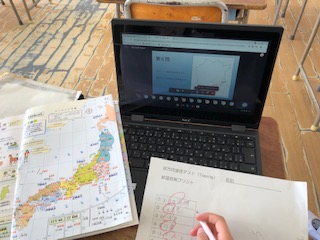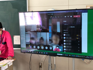 家にいる子どもたちは、都道府県や学校クイズなどの学校からの担任の指示を端末で確認して答えていきました。また、家にいる子どもたちの姿も学校の画面で確認できました。