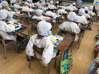 (写真は一年生。児童の写真は、後ろ姿やモザイク処理をしたものを使っています。)