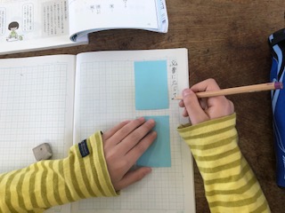 「知りたいことを聞き出そう」の学習では、小さいカード(付箋)も使っています。