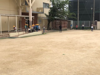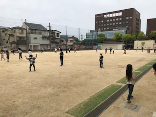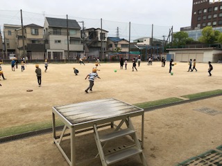 まだ、雨が降っていない休み時間には運動場で元気に遊ぶ子どもたちの姿が見られました。