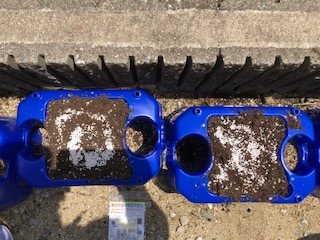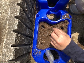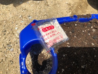 元肥を入れて、土に穴を開けて、種を入れていきます。