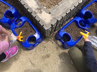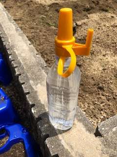 家から持っていたペットボトルに水を入れて鉢にかけていきます。
