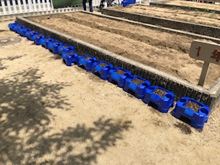 学習園に植木鉢が並べられています。夏に咲くたくさんの花が楽しみです。