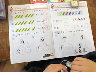 1年生の算数では、「いくつといくつ」の学習を続けています。