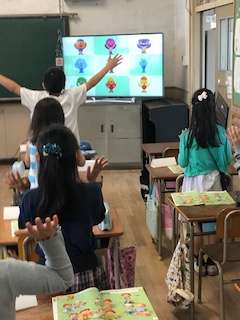 今日は歌やダンスで英語に親しむことも取り入れていました。