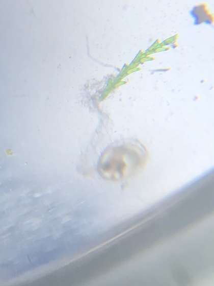 子どもたちがじっくりとたまごの様子を観察しています。解剖顕微鏡で見えたたまごの写真を撮ることができました。メダカの目が見えています。(下の写真)