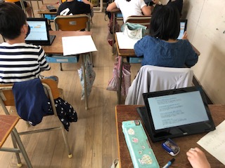 国語 一人一台端末で調べてレポートを書いています 3年生