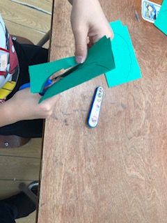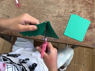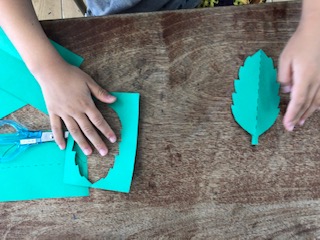 バスを使ったあとには、はさみを使って葉っぱの形を切り取っていきました。