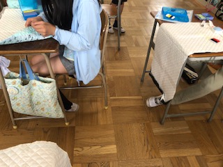 家庭科 ナップサックを作っています 6年生