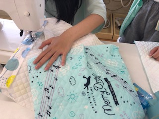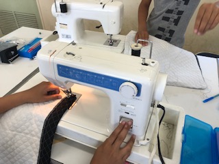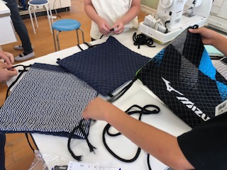 ミシンを使って縫っているナップサックも完成に近づいてきています。
