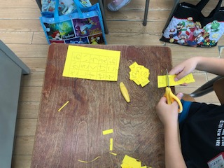 1年生はすべてのひらがなを学びました。50音表を一文字ずつ切り取っています。