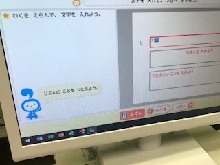 まんが・イラストクラブ、パソコンクラブです。パソコンで名刺を作っています。