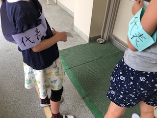 今週は、代表委員会が中心となって活動する「きまりを守ろう週間」です。きまりを守ろうというたすきや腕章をつけて休み時間に廊下に立っています。